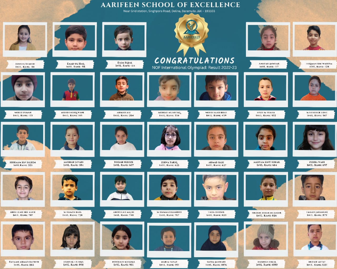 Baramulla, February 04: In a first of its feat in Kashmir, the students of Aarifeen School of Excellence (ASE), Baramulla, bagged 61 gold medals in the International Junior Olympiad, organised by the National Olympiad Foundation (NOF).