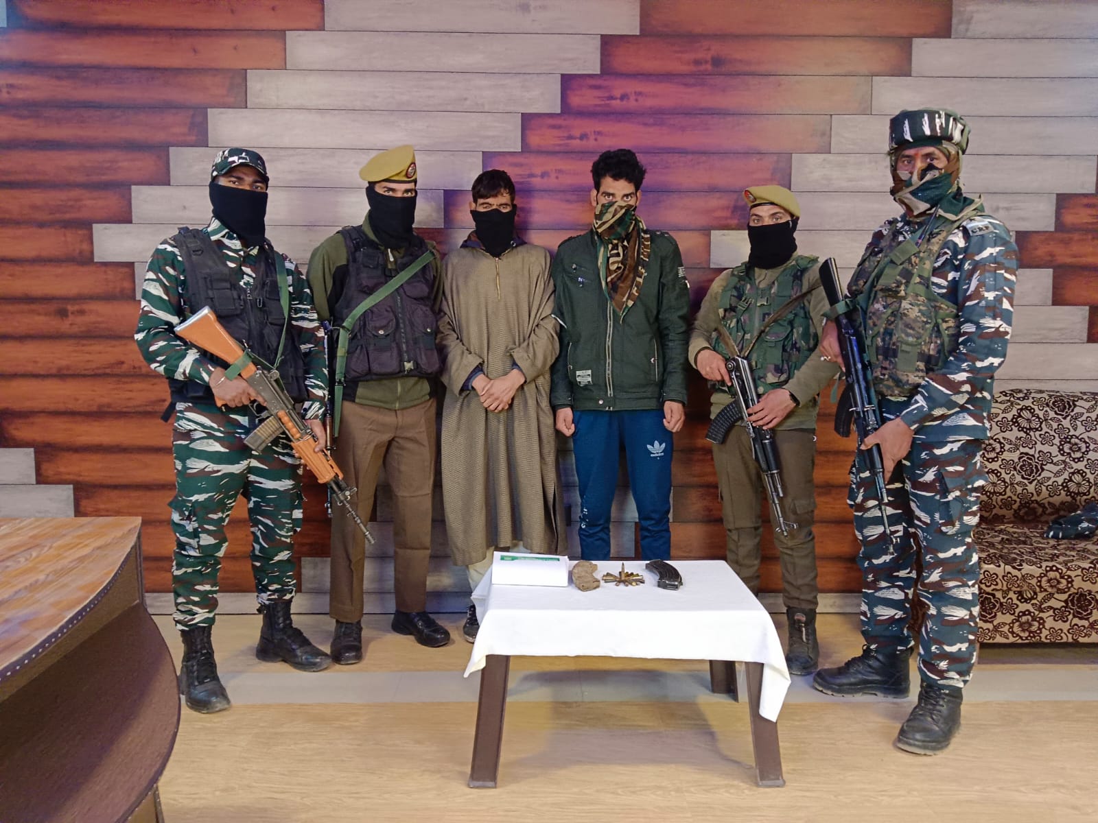 In an handout to GNS, the police said that Joint forces of Baramulla Police and 176 Bn CRPF on a specific information regarding presence of militants in Village Monchkhud Kunzer launched a joint CASO in the said village. During CASO two suspect persons were apprehended, identified as:Khurshid Ahmad Khan son of Mushtaq Ahmad Khan & Reyaz Ahmad Khan son of Gh Mohi ud Din Khan both residents of Zandpal Kunzer.