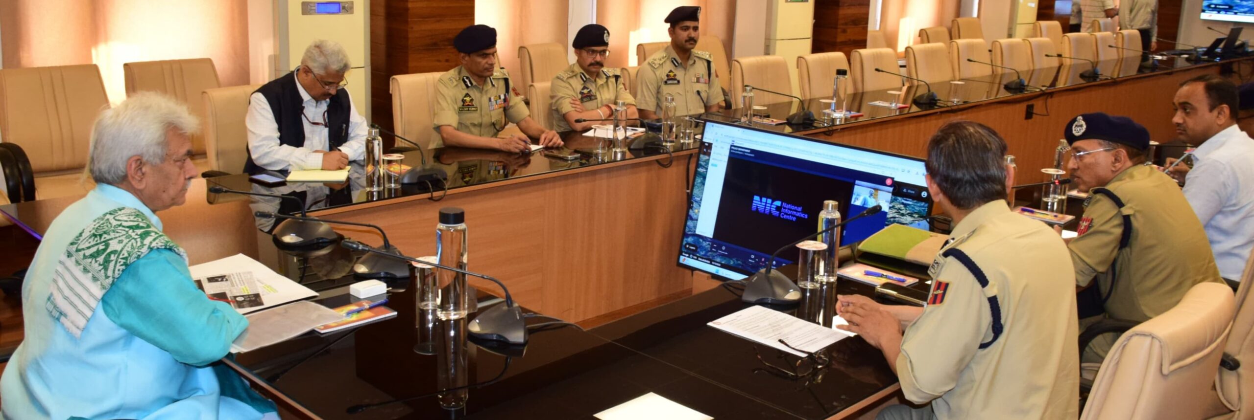 JAMMU, JUNE 10: Lieutenant Governor Shri Manoj Sinha today chaired a high-level security review meeting with the officials of J&K Police and Civil Administration, at Police Headquarters, Jammu.